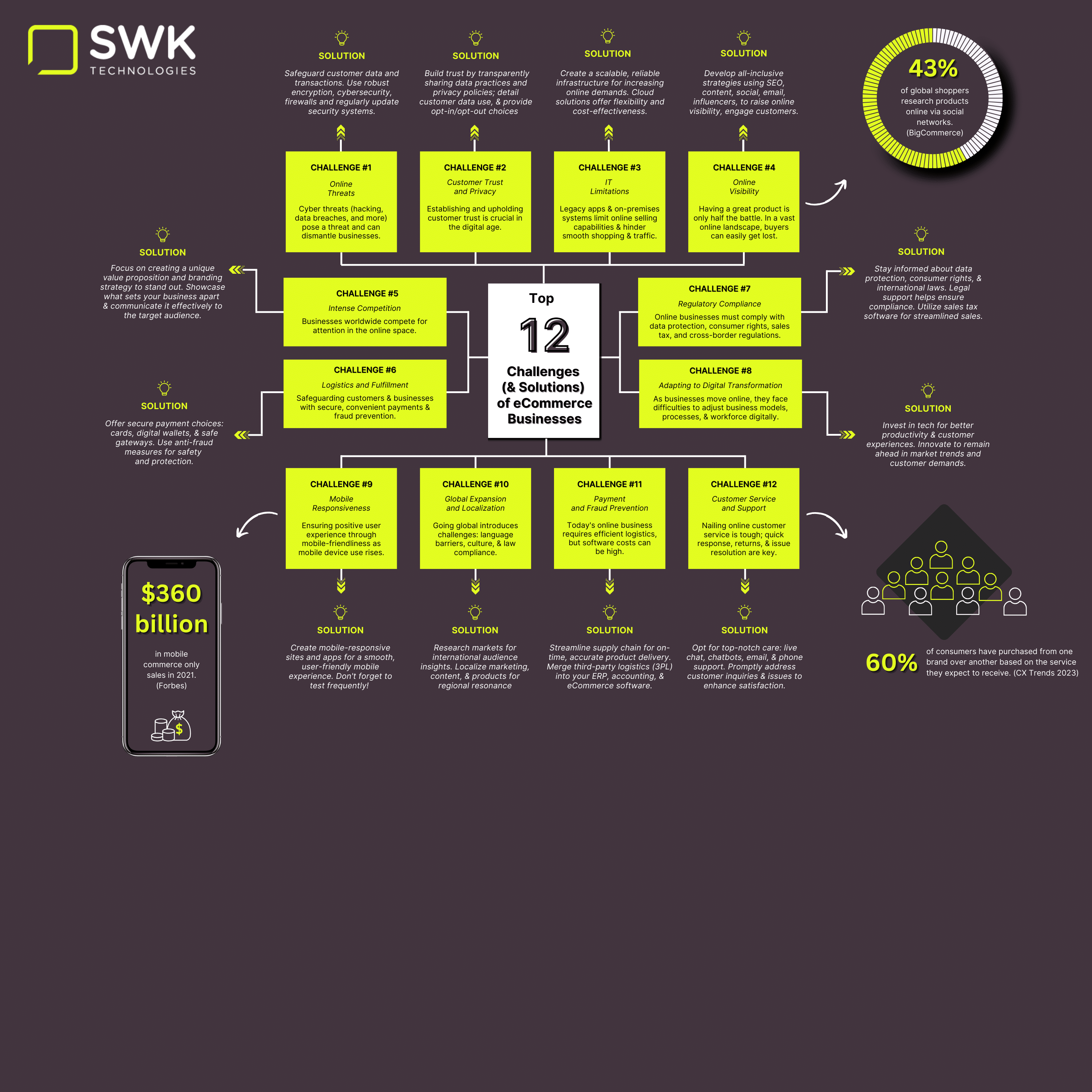 And navigating them can be a handful! Discover the top 12 challenges (& solutions) eCommerce businesses face in our FREE infographic.